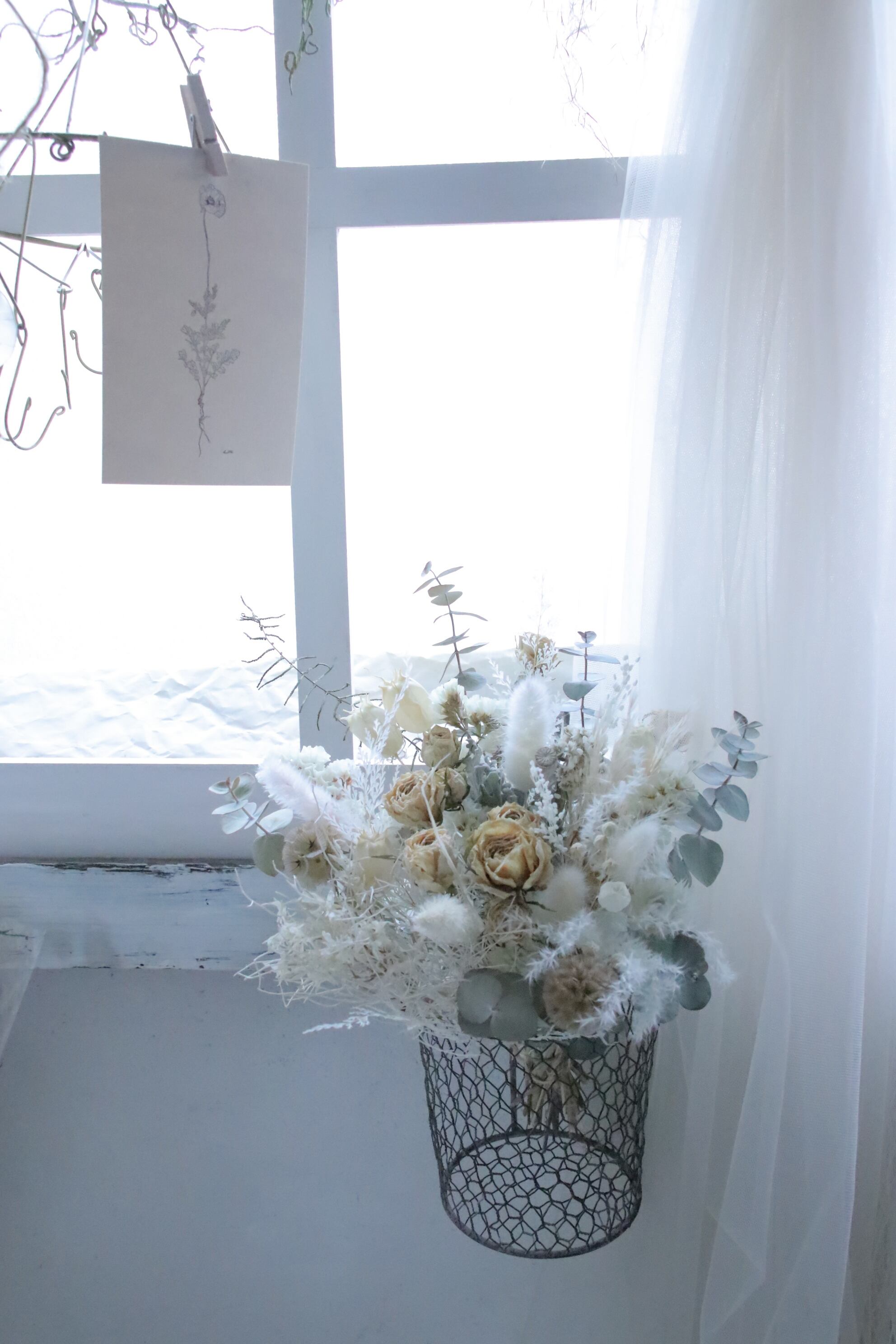 エクリュカラーブーケinアイアンフックシャビーバスケット